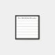 Dieses kleine quadratische 3x3 klebrige Notizblock kann mit einem Namen oder einer Nachricht personalisiert werden. Es hat jetzt eine lustige Botschaft, als "nicht so subtile" Erinnerungen Es ist einfach und minimalistisch in Schwarz-Weiß. Die Noten haben Linien.