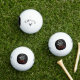 Three white golf balls personalized with a funny, custom "lost ball" message.