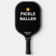 Mit diesem lustigen Pickleball-Paddel, das "Pickle Baller" heißt und mit einem gelben Pickleball hervorgehoben wird, wirst du ein Hit auf dem Platz. Fett Weiß ist Set vor schwarzem Hintergrund, aber Sie können die Farbe leicht ändern. Fügen Sie 2 Zeilen benutzerdefinierten Text zu personalisieren - Clubname, Position, Spielername, Telefonnummer, etc. Oder löschen. Ein perfektes Geschenk für jeden Pickleball-Spieler/Baller - Väter, Mütter, Freunde, Kinder, Großeltern, Pickleball-Partner, Coaches, Pickleball-Clubmitglieder - sowohl Anfänger als auch erfahrene Spieler werden sich mit diesem freundlichen Paddel sicher zum Lachen bringen.