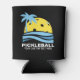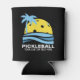 Behalt dein Getränk cool mit dieser lustigen kann kühler mit einem pickleball "Sonne" gerahmt von einer tropischen Palme und blauen Ozeanwellen. Ein phantastisches Geschenk für Pickleball-Spieler, Coaches, Clubveranstalter - oder als Preisgeld bei Ihrem nächsten Turnier.