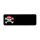 Feiner Cartoon-Schädel mit vermissten Zähnen mit rotem Bandana, Augenpflaster und goldenem Ohrring und Kreuzknochen.