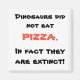 Funny Pizza Magnet mit der Phrase "Dinosaurier nicht essen Pizza. Tatsächlich sind sie ausgestorben!"