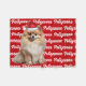 Your dog deserves a blanket of their own, especially with their name and breed on it. Fun throw to warm the season by the fireside or tossed over the sofa. A Pomeranian dog in Santa hat, with the dog's name patterned on a red background. TIP: Choose Personalize to change the background color to one which matches your decor if you like.