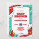 Feiern Sie mit einem Höhepunkt von Farbe und Freude! Diese lustige Babydusche im Comic-Stil mit fett rotem Text, spielerischem Schlagschatten und dynamischen Pop-Kunst-Akzenten. Ideal für Eltern, die ihren Feiern Spaß und Flair verleihen möchten.