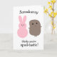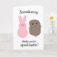 Eine lustige Osterkarte mit einem rosa Hasen und einer Kartoffel auf der Vorderseite dieser Karte. Inside liest eine Osternachricht, die leicht personalisiert werden kann.