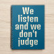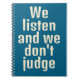 Funny qoute blue notebook . Wir hören zu und beurteilen nicht.
