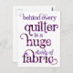 Ein lustiger Quilting Gruß Postkarte. Hinter jedem Quilter steckt ein riesiger Stoffsteck. Dieses prächtige typografische Design würde eine wunderbare Postkarte für das "Denken an dich" für ein Quilter oder eine Kanalisation machen - oder als besondere Geburtstagskarte verwenden.