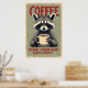 Funny Raccoon Coffee Art Poster