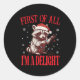 Funny Raccoon First Of All I'm A Delight Merry Chr Runder Aufkleber
