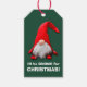 Dieses lustige Holiday-Geschenketikett zeigt ein niedliches Bild eines kleinen, weißen Bartknochens mit einer roten Weihnachtsmannmütze, die ihm über die Augen kommt. Das Vorderbild wird auf einem grün-weihnachtlichen Hintergrund platziert, wobei der Text in Weiß unter dem Elfbild abgebildet ist. Die Rückseite des Tags ist weiß, mit dem gleichen roten Gnom-Bild, und der benutzerdefinierte Text in rot. Stellen Sie sicher, dass Sie die passende Geschenkpackung und Geschenktaschen sehen.