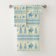 Funny Reindeer Christmas Tree Snow Blue Pattern Badhandtuch Set
