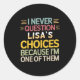 Funny Relationship Quote I Never Question Lisa’s C Runder Aufkleber