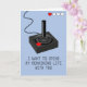 Funny Gamer Valentinstag-Karte mit einem blauen Hintergrund, der in jede Farbe geändert werden kann, ein Retro-Computer Joystick, 4 lebt mit 1 übrig, und das niedliche Sprichwort "Ich wollte, mein verbleibendes Leben mit dir zu verbringen".