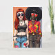 Sage einem Freund mit dieser lustigen, lustigen 70er-Jahre-vibes-Karte Glück zum Geburtstag. Eine kaukasische und afroamerikanische Frau in groovy Kleidung der 1970er Jahre. Adorable Pop Art Comic buchen Stil Freunde in den 1970er Jahren.