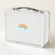 Funny Retro Metall Lunch Box. Regenbogendesign. Grewwwat für diese, die Kalorien zählen oder nicht. Irgendwo über dem Regenbogen... Kalorien zählen nicht, ist auf dieser grasbewachsenen Kiste schreiben.