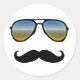 Funny Retro Sonnenbrille mit Mustache Runder Aufkleber