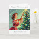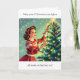 Looking for a funny Christmas card for a friend or family member? Add a little humor into their holiday season with this cute retro mid-century graphics and humor. A woman hanging up Christmas lights on the tree saying, 'May all your Christmas lights work on the first try." Because honestly, we know they won't, right? Inside is some more Christmas humor to make your friend laugh.