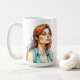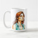 Und doch, trotz des Gesichtsaussehens, sprichst du immer noch! Funny sarkastisches Zitat auf einer Kaffee-Tasse. Hübsche Dame mit leerem Gesichtsausdruck, als wäre sie gelangweilt.