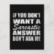 Wenn Sie lustige sarkastische Zitate oder großartige humorvolle Entwürfe mögen, dann ist dieser originale Slogan " Wenn Sie keine sarkastische Antwort gewollt haben, frag mir nicht " für Sie. Es ist ein großartiges Geschenk für Ihre Familie, Freunde oder Sie selbst! Dieses Design ist ideal für alle, die Sarkasmus und Spaß Lieben. Wenn Ihnen dieses lustige Zitat gefällt, Karo mehr ähnliche Kunstwerke im Omitay Store heraus. Bleibe sicher und danke für die Unterstützung eines lokalen Künstlers.