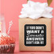 Wenn Sie lustige sarkastische Zitate oder großartige humorvolle Entwürfe mögen, dann ist dieser originale Slogan " Wenn Sie keine sarkastische Antwort gewollt haben, frag mir nicht " für Sie. Es ist ein großartiges Geschenk für Ihre Familie, Freunde oder Sie selbst! Dieses Design ist ideal für alle, die Sarkasmus und Spaß Lieben. Wenn Ihnen dieses lustige Zitat gefällt, Karo mehr ähnliche Kunstwerke im Omitay Store heraus. Bleibe sicher und danke für die Unterstützung eines lokalen Künstlers.