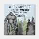 Ein lustiger Magnet für Zuhause, Camper oder Hütte. Ein Wald mit einem Sasquatch und die Nachricht "Was passiert im Wald... Bleibe im Wald"