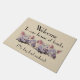 Doormat mit einem Stift und Tinte farbige Abbildung von vier fröhlichen kleinen Piges in lustigen Farben. Kleine Schweine oder ausgewachsene Schweine? Es ist nicht wirklich wichtig, denn sie sind so herzlich und fröhlich. Diese Originalillustrierung wurde von der Künstlerin Leah Wiedemer erstellt. Tiere haben solche Persönlichkeiten, und das hofft Leah in ihren Illustrationen zu vermitteln.