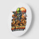 A hilarious sci-fi fantasy design featuring an alien riding a dinosaur on an explosive planet-hunting adventure.