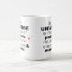 Funny science universe coffee mug featuring the joke “Protons Neutrons Electrons Morons.” Perfect gift for geeks, teachers, students & STEM fans.
