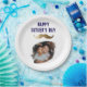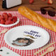 Funny Simple Mustache Happy Vatertag Foto Paper Teller. Einfache Teller mit goldenem Schnurrbart und glücklicher Vatertag. Fügen Sie Ihr Foto hinzu. Ein süßes und lustiges Foto für Papa zum Vatertag.
