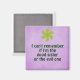 Funny Sister Quote Magnete, "Ich kann mich nicht erinnern, ob ich die gute oder die böse Schwester bin" mit lila Hintergrund, grünem Schriftart und Retro-Blume.
