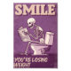 Add dark humor to your wall with this Funny Skeleton Weight Loss Poster featuring a vintage-style skeleton illustration and sarcastic motivational text. This artwork combines classic retro poster aesthetics with bold humor, making it perfect for people who love sarcastic quotes, dark comedy, and unique wall décor.