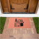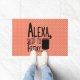 Moderne Haustürgestaltung mit Typografie "Alexa, überspringen bis Freitag" Grafik auf Korallen und weißem Polka Punkt Hintergrund