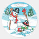 Funny Snowman mit Hot Chocolate Cartoon Runder Aufkleber