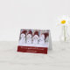 Vier niedliche, junge Schneemänner in Strickhütten. Man sieht kein Böses, man spricht kein Böses, man hört kein Böses, während der vierte gerade den Weihnachtsmann gesehen hat! Eine niedliche und lustige Weihnachtsgrüßkarte, die sicher jeden begeistern wird, der sie sieht.