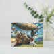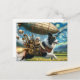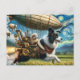 Funny Steampunk Border Collie with Sheep and Blimp Postkarte