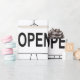 Funny Strichmännchen Holding Open Sign Geschenkpapier