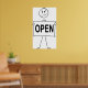 Dekorieren Sie Ihren Raum mit einem spielerischen Poster, das eine klare Botschaft sendet. Dieses Design verfügt über ein lächelndes Strichmännchen mit einem "OPEN" Zeichen in einem einfachen, Cartoon Stil. Dieses Poster eignet sich ideal für Geschäftseingänge, Zuhause-Büros, Studios oder kreative Arbeitsräume und kombiniert saubere Linien mit freundlicher Atmosphäre. Eine großartige Möglichkeit, Ihre Energie im Freien mit Spaß und Charme zu zeigen.
