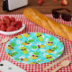 Coole Ananas, die eine Sonnenbrille auf einem Hintergrund von Blume aus blauem und weißem Hibiskus tragen. Dieses komische, tropische Muster auf Geschenkverpackung und Party ist perfekt für Luaus, Partys im Sommer und Packgeschenke für Ananas Liebhaber!
