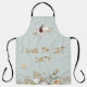 Schöne, lustige, niedliche Schürze im Garten. Landschaftlich zarte Botanicals mit Blumen und Blätter in einer Gartenlandschaft mit einem staubigen grünen Hintergrund. Mit niedlicher Typografie Zitat "Ich mag es, schmutzig zu werden". Ideal für einen glücklichen Gärtner mit süßem Floppy-Hasen. Machen Sie ein wunderbares, einzigartiges Geschenk für sie.
