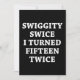Ein lustiges Meme Geburtstagsgeschenk-Konzept, das besagt: "Swiggity swice I Turn Fünfzehn zweimal"