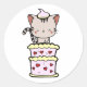 Funny Tabby Cat springt aus einem Kuchen Runder Aufkleber