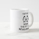 Jumbo-Tasse macht sich über die Absurdität lustig, eine von Pinguinen besetzte Insel zu entwerfen. Das Design verfügt über Pinguine und Text-Sprichwort "Tarife? Was haben wir falsch gemacht?" Alle Elemente des Designs sind anpassbar, inklusive Textinhalt und Farbe.