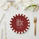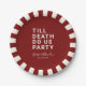 Set Sie den Ton für Ihren Hochzeitsempfang, Ihre Verlobungsfeier, die Dusche eines Paares oder Ihren Hochzeitstag mit diesem lustigen Papierteller. Dieses Design enthält einen fett gedruckten Text "TILL DEATH DO US PARTY". Die Textvorlage erlaubt es Ihnen, dieses Design mit den Namen der Braut und des Bräutigams und dem Hochzeitstag zu personalisieren. Sie können den Text auch in andere Formulierungen umwandeln, wenn Sie es wünschen. Erhältlich in verschiedenen Farben - hier in weißem Text mit bordeauxfarbenem Hintergrund dargestellt.