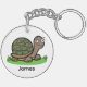 Drôle, bizarre, tortue de dessin animé, porte - clé personnalisé. Cette mignonne tortue a une expression comique de folie sur son visage, une coquille verte et un corps brun. Les mots "James" en lettres noires sont sous la tortue, c'est un modèle pour ajouter votre propre nom à personnaliser.