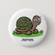 Funny, sonderbar, Cartoon Schildkröte, personalisiertes Abzeichen / Button. Diese niedliche Schildkröte hat eine komische, goofy Ausdrucksweise auf dem Gesicht, eine grüne Muschel und einen braunen Körper. Die Worte "James" in schwarzen Buchstaben ist unterhalb der Schildkröte, dies ist eine Vorlage, um Ihren eigenen Namen zu personalisieren.