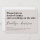 Laden Sie Freunde und Familie zu Ihren Hochzeitsfeiern mit dieser lustigen Einladung ein. Der Text lautet: "Bitte schließen Sie sich uns für kostenlose Getränke und eine Hochzeit auf der Seite an"