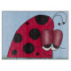 Der lustige und euphorische Ladybug steht unter dem Feld des grünen Grases, mit einem Blick von reinem Inhalt.