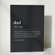 Diese schwarze Karte enthält eine lustige Definition von Papa.
