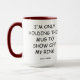 Dies ist eine lustige Verlobung Ankündigung Rustic Kaffee Tasse. Beste Kaffee-Tasse für nur Verlobten Frauen. Diese Kaffee-Tasse enthält eine lustige Typografie-Design sagt: "Ich halte nur diese Tasse, um meinen Ring zu zeigen". Dies ist auch mit einem benutzerdefinierbaren Namen versehen. Klicken Sie auf den Personalize Button, um Braut- und Bräutigam-Namen hinzuzufügen.