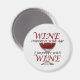 Ein Glas Wein mit dem Text "Wein verbessert sich mit dem Alter-I verbessern mit Wein" auf einem lustigen Küchenmagnet.
